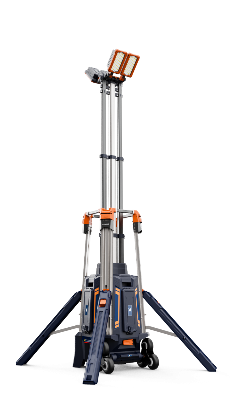 Indicada para locais de difícil acesso, obras, mineração, emergências, eventos e inspeções. Oferece até 65.000 lúmens, montagem rápida, operação por uma só pessoa e funcionamento da bateria ou rede elétrica. É resistente a intempéries e uma alternativa ecológica e económica às torres a combustível.